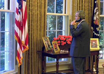 中新網北京9月6日消息:據法新社發自白宮的消息,美國總統喬治-布什今天打電話給中國、俄羅斯和法國的領導人,就伊拉克問題進行了商談。