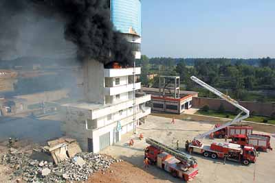據新華網報道,今天這次演習是模擬超高層建筑受到恐怖襲擊爆炸起火,借此檢驗公安消防部隊跨區域應急救援預案的落實情況和應用新技術裝備的實戰水平,提高跨區域反恐應急救援能力。現場演練包括高層建筑滅火救生、建筑物倒塌情況下的搜救等項目,另外還模擬了遭遇毒氣襲擊時的緊急處置。救援隊員使用了A類泡沫車、破拆高噴車、消防機器人、蛇眼生命探測儀等先進設備。(邱紅杰)
