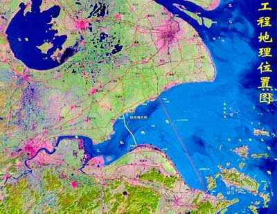 計劃于2003年開工的杭州灣大橋全長36公里,將是世界上最長的跨海大橋。大橋南起寧波慈溪,北及嘉興乍浦,橫跨杭州灣喇叭口江面。橋面設計為6車道高速公路,設計時速100公里,使用壽命100年以上。