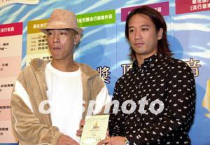 香港作曲家及作詞家協會(CASH)9月25日舉行“2002金帆音樂獎”記者會,公布各音樂獎項入圍名單,歌星陳小春(左)代表協會揭曉“最佳流行音樂”入圍名單,其中已向幕后發展的Eric Kwok的作品成功入圍。中新社圖鄧慶樂攝