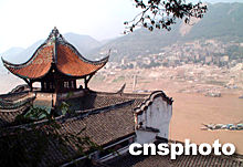 具有1700多年歷史的云陽張飛廟,伴隨三峽工程二期水位的逼近,2002年10月8日上午10點正式閉館。重慶云陽縣文管所和遷建單位以辦完交接手續,并開始對張飛廟進行拆遷,標志著建國以來全國最大規模的文物搬遷工程正式啟動。圖為張飛廟結義樓全景。巨建兵 攝