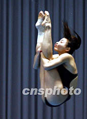 中國跳水女將郭晶晶十月十日在釜山舉行的亞運女子三米板跳水比賽中奪冠。作者:潘索菲