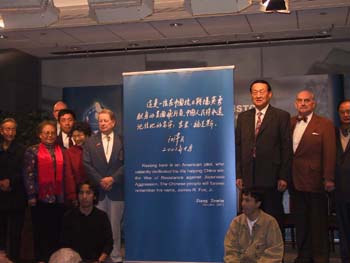 江澤民主席的題詞是:這是一位在中國抗日戰場英勇獻身的美國飛行員,中國人民將永遠記住他的名字:吉米.福克斯。