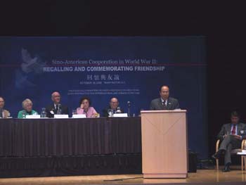 中國國務院新聞辦主任趙啟正今天在二戰援華老兵及親屬座談會上呼吁以戰略眼光發展中美關系。中新社記者 余東暉 攝