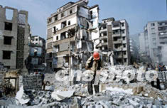 三峽導流明渠截流在即,重慶奉節舊縣城四十多棟高樓,在陣陣炮聲中夷為平地,僅一個秋季就拆除清理了一百一十八萬平方米的舊樓盤。作者:李中全