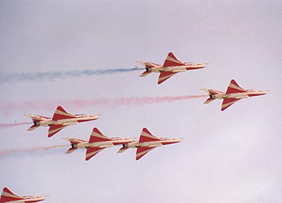 隨后,中國航空工業(yè)總公司研制生產(chǎn)的F-8IIM、F-7MG戰(zhàn)斗機(jī)、K-8型教練機(jī)、直九型飛機(jī)舉行特技飛行表演;俄羅斯‘試飛院’特技飛行隊(duì)的蘇27、蘇30戰(zhàn)斗機(jī)進(jìn)行了特技飛行表演,中國航天工業(yè)總公司齊射2000枚航天火箭模型,引起一陣驚嘆。整個(gè)航展過程中,幾十架中外飛行愛好者駕駛的特技飛機(jī),超輕型飛機(jī),動(dòng)力傘,熱氣球連續(xù)不斷地升空比賽,嗡嗡的發(fā)動(dòng)機(jī)鳴叫聲和穿梭往來的小飛機(jī)給航展增添了許多節(jié)日氣氛,尤其受到孩子們的歡迎。