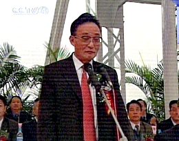 國務院副總理吳邦國宣布導流明渠截流合龍成功后,全國人大委員長李鵬發(fā)表了重要講話。