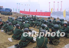 圖:長江三峽工地武警戰(zhàn)士嚴陣以待