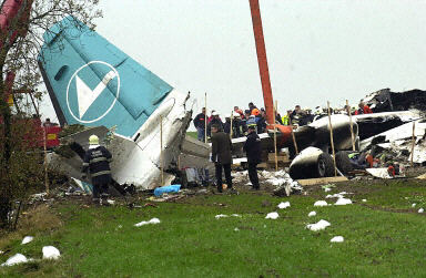 肇事飛機是盧森堡航空公司的福克-50型雙螺旋漿客機。事發時,機上共有19名乘客和3名機組人員。到目前為止,至少有17人遇難。德國外交部發言人說,大部份死者是德國人。