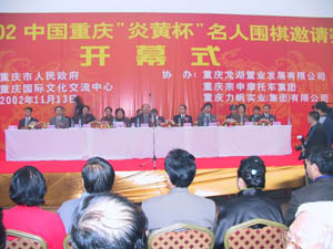 中新重慶網11月13日電(記者劉小青鄒輝)“魅力重慶展風姿,巴山渝水迎嘉賓”,二零零二年中國重慶“炎黃杯”名人圍棋邀請賽今天在此間正式開枰,來自海內外眾多杰出華人專家學者、社會活動家、企業家齊聚山城,以棋會友。重慶方面更是大施“盤外招”,欲巧借舉行“炎黃杯”之東風,加強與各國地華人精英的溝通,從而促進該市對外交流與合作。