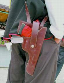 據信息時報報道,頭戴一頂禮帽,上穿絲綢馬夾,下穿寬大褲頭,屁股上還掛著一把木制“駁殼槍”,點頭哈腰,遇見客人無論男女均叫“大爺”,保安胳膊上還戴著一個寫有“廣州市治安協管員”的黃色袖章。……這京是花都區云海閣酒樓10多名保安的形象。