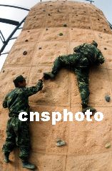 解放軍某野戰通信團,日前組織官兵進行攀巖訓練。該團已將膽識和心理素質訓練作為2002年冬季訓練的重要科目。