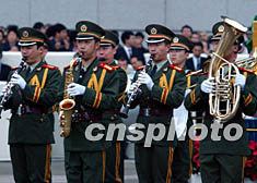 圖:中國武警軍樂團與香港警察樂隊合作升旗