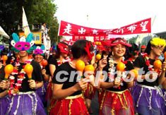 高雄市長選舉進入倒計時,十二月五日一支游行隊伍在橫幅上打出訴求口號。中新社 攝