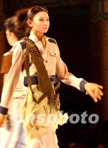 北京今冬天橋上展示的新生代設計師時裝,流行著戰地風云的濃郁氛圍,模特的貓步好似走向“戰場”。作者:賈國榮