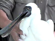 據“中央社”報道,臺南沿海于12月9日迄今共發現63只病態和死亡的黑面琵鷺,尚存活的10只黑琵中,8只在臺南縣家畜疾病防治所救治,2只在“行政院農業委員會”設于南投縣的特有生物保育中心觀察保育。