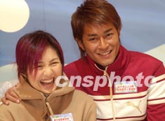 歌星楊千樺12月17日在香港出席其音樂特輯“當飄雪戀上圣誕樹首映禮”。楊千樺、古天樂等早前為該音樂特輯遠赴日本北海道取景拍攝,并將在本月22日晚于翡翠臺播映。鄧慶樂攝