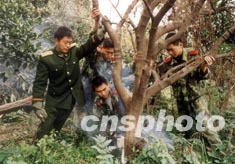重慶市奉節縣十二月組織人員砍伐三峽庫區內的廣柑林,以在既定時間內完成三峽庫底清理任務。作者:李中全
