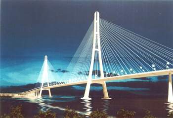 該橋全長約十五點六公里,主跨跨徑六百四十八米,設計為六車道高速公路。工程投資概算二十九點六億元,工期四年,計劃于二00六年底建成通車。