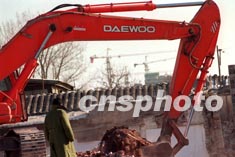 大型機械歲末在北京東城北新橋一帶拆舊建新。進展迅猛的北京危舊房改造工程業已向二環城內發展,大批二十世紀初的破舊民房將逐漸被高樓大廈取代。作者:鄒憲