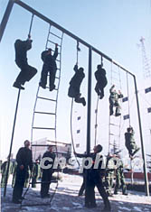 武警部隊北京后勤基地的新兵冬季進行攀登訓練,增強體能素質。作者:曹文