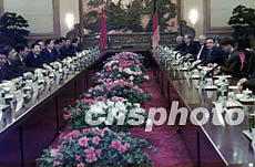 中新社北京十二月二十九日電(記者 朱大強)中國國務院總理朱镕基今天在人民大會堂與來訪的德國總理施羅德舉行會談,雙方在親切友好的氣氛中就雙邊關系和國際形勢交換了意見。朱镕基強調,近年來中德關系在各個領域都取得顯著發展,無論在廣度和深度上都處于歷史最好水平。