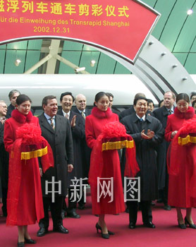 中德兩國總理為上海磁浮列車線試運行通車剪彩