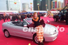新年伊始,粵東汕頭都市汽車展開幕。風姿綽約的汽車模特站在一款銀灰色的敞蓬跑車旁,為車展增添艷麗色彩。作者:王惠存