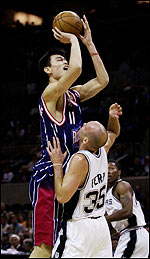 事實上,NBA官方主頁開通中文版全明星投票專欄后,中國球迷的投票暴雨般集中在姚明的身上。可是,姚明不僅在網上投票,而且在球場上進行的紙面投票中也一直遙遙領先。可以說,NBA已經打造出了一片“姚明天下”。
