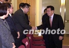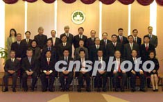 應澳門特區政府的邀請,全國政協主席李瑞環七日到達澳門特區進行訪問。 中新社傳真 李剛 攝