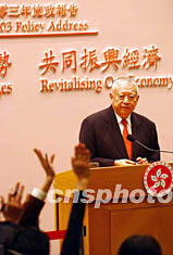 香港行政長官董建華,1月8日在立法會提交他連任的首份施政報告。洪少葵 攝