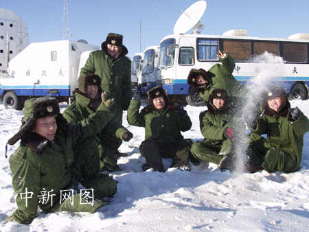 2003年1月1日,“神舟”四號飛船在軌飛行期間,著陸場科研人員喜慶新年。孫陽 攝