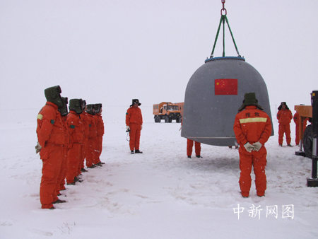 2002年12月29日,返回艙吊裝模擬演練。孫陽 攝