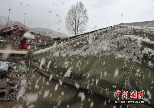 圖:西寧各界民眾冒雪悼念玉樹地震遇難同胞