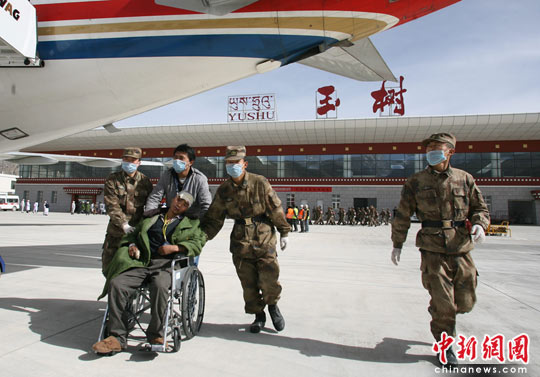 玉樹地震災區14名藏族重傷員轉移至西寧
