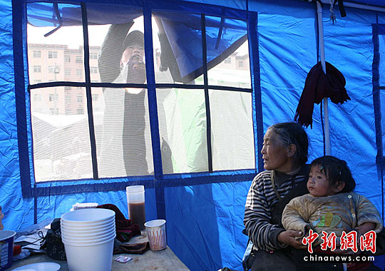 玉樹震中點日麻村幾家民房僅出現窗戶玻璃破碎