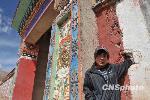 圖:玉樹震中點日查榮寺寺門兩邊出現裂縫