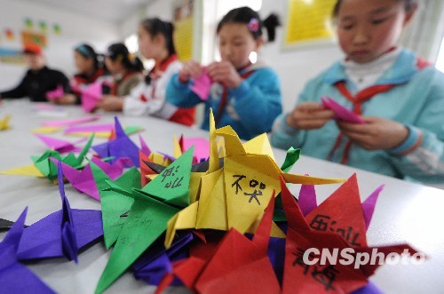 江蘇揚州:疊千紙鶴 為玉樹祈福