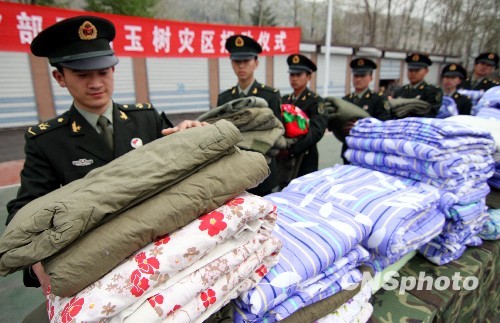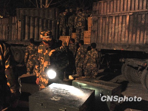 圖:武警青海省總隊星夜向玉樹運輸大批物資