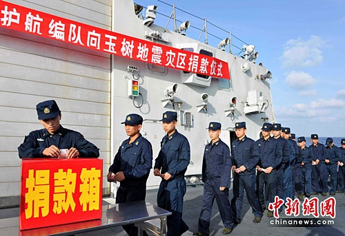 中國海軍第五批護航編隊官兵向玉樹地震災區捐款