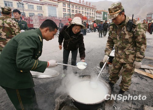 戰(zhàn)士為玉樹信眾清理地震廢墟中的法器