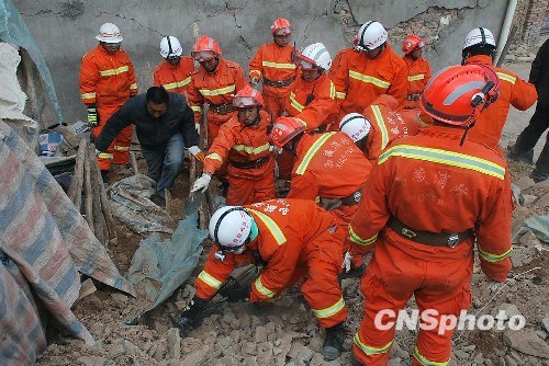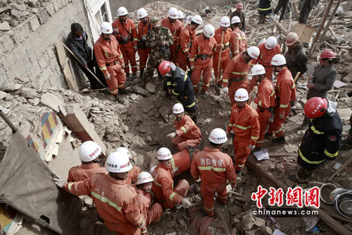 圖:西藏消防總隊(duì)在玉樹地震現(xiàn)場救援