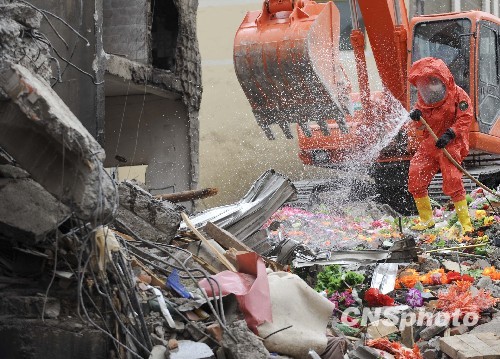 圖:玉樹地震廢墟消毒防疫工作展開