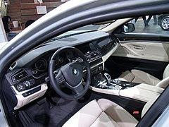 駕駛區域向駕駛者方向有大約7°的傾斜,不對稱設計的中央控制臺突出了以駕駛者為導向的理念。我們在BMW新一代5系Li的內飾部分能夠看到明顯的新7系內飾風格的影子。整體中控臺看上去很像是全新7系轎車的翻版。而且如果仔細觀察的話我們還會發現其中的一些細節更是與新7系轎車所使用的配置完全相同。