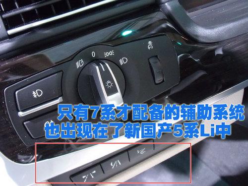 新款國產5系Li的變速器依然位于中央扶手部分,外形設計與新款7系轎車相同,為符合人體工程學的飛行手柄式,在其旁邊還有關閉穩定程序、懸架舒適性調節、i-drive等相關控制按鈕,而在這支變速器桿所連接的部分是BMW全新的8前速手自一體變速器。