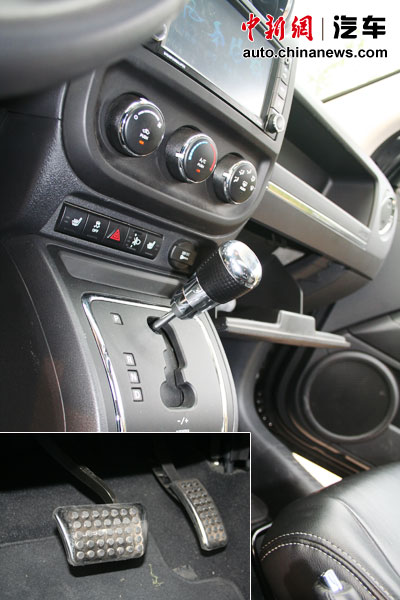這臺指南者在內飾方面的變化和外觀相比,在視覺效果上變化沒有外觀那么明顯,剎車踏板、油門踏板和檔把都采用了帶有金屬質感鍍鉻件進行了裝飾。