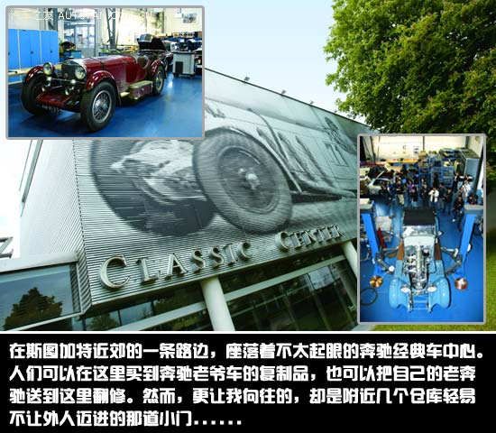 作為游客,你在這里可以看到一些艷光四射的翻新經典車,購買到奔馳經典車的模型,并且學習老爺車收藏的知識。最后,你可以看到一扇通往車間的小門,很抱歉,你只能在這里留步了。后面的內容,讓我帶你去看吧!