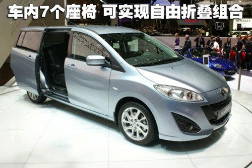 內飾上,新款Mazda5將采用全黑內飾,在中控臺、換擋桿、方向盤和車門等部位上還配有大量銀色裝飾條。新增加的配置還包括了更先進的多功能方向盤等,該車與老款一樣擁有7個座椅,包括前兩排5個固定座椅和第三排的兩個可拆卸座椅,并通過第二排座椅的獨特多功能及折疊機構,實現多種座椅布局。