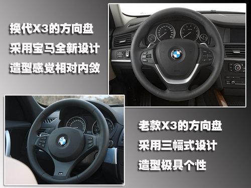 內(nèi)飾的風(fēng)格,老款X3經(jīng)過將近4年的歲月,設(shè)計(jì)風(fēng)格顯然有點(diǎn)趕不上潮流,大面積顏色裝飾感覺缺乏質(zhì)感,中控臺(tái)的設(shè)計(jì)也比較有復(fù)古。換代X3的內(nèi)飾采用了寶馬全新的設(shè)計(jì)感覺,簡單的中控臺(tái)設(shè)計(jì)很直觀,桃木材質(zhì)的使用更加突出了內(nèi)飾的高品質(zhì)。