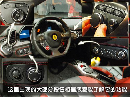 458Italia的內飾設計理念是以駕駛員為核心,所以身處駕駛席的時候你會發現在你的眼前以及左右手的周圍分布了非常多的儀表、按鈕,這種感覺有點兒像是坐在一臺飛機的駕駛室里面。想要熟悉一下458Italia的這些按鈕真的需要一些時間。